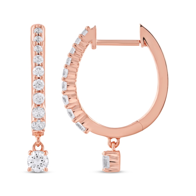 - Unstoppable Love Diamond Hoop Dangle Earrings 3/4 ct tw Rose Gold Plated