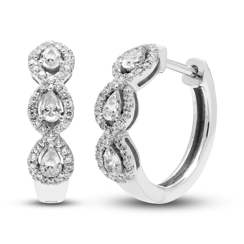 Diamond Hoop Earrings 1/2 ct tw Pear & Round-cut White Gold Plated