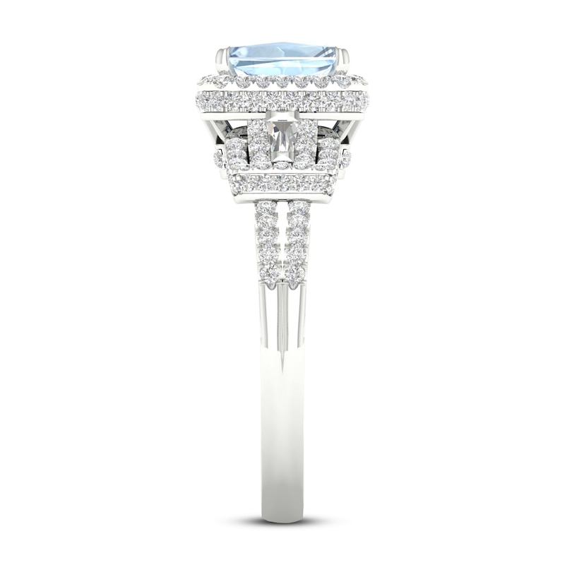 - Aquamarine & Diamond Engagement Ring 1/2 ct tw Emerald, Round & Baguette-cut White Gold Plated