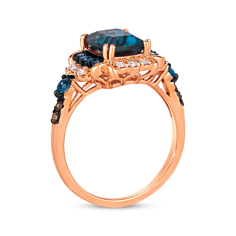 - Le Vian Blue Topaz Ring 1/5 ct tw Diamonds Strawberry Gold Plated