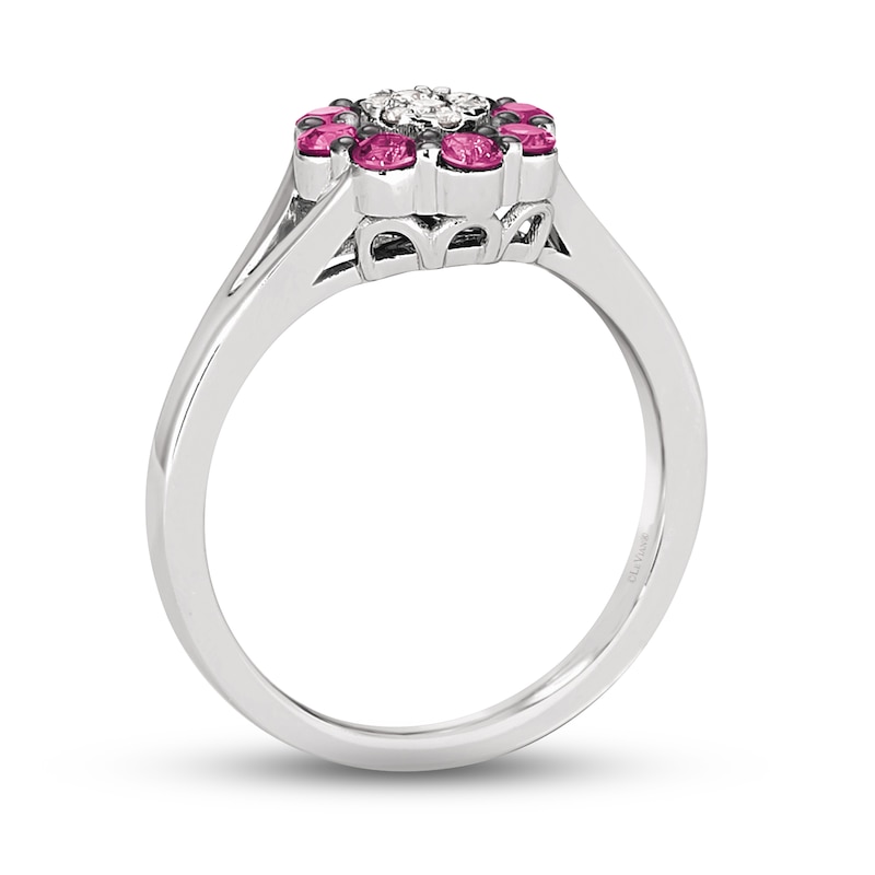 This irresistible ring from Le Vian® features a radiant center of Vanilla Diamonds® embraced by a Passion Ruby™ halo. Crafted in 14K Vanilla Gold®, the silhouette has a total diamond weight of 1/20 carat. Le Vian®. Discover the Legend. This ring is available in limited sizes. If you don't see your size here, please visit a store to order your ring.
