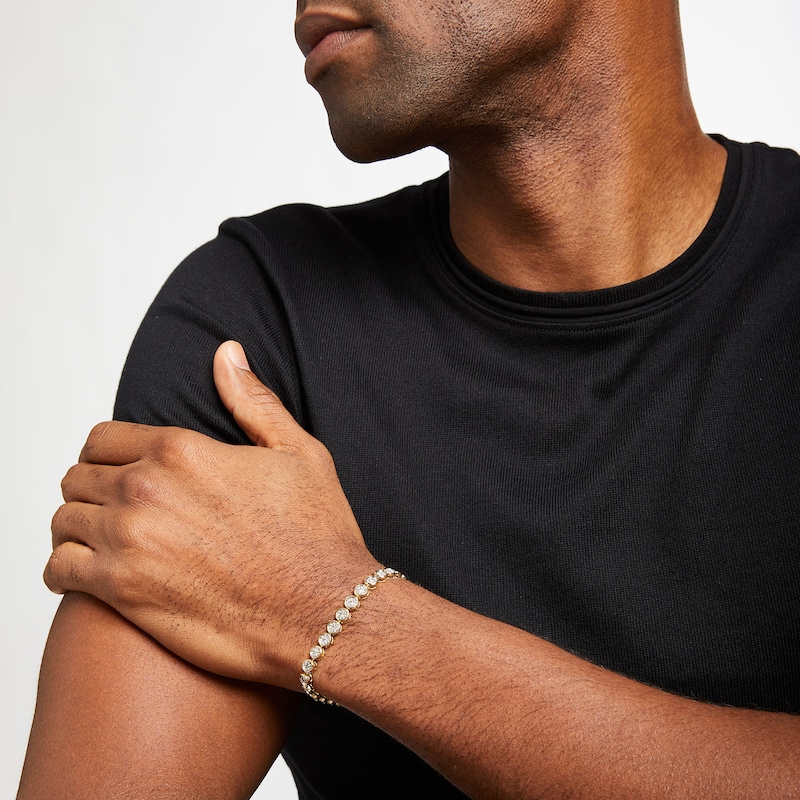 - Men's Diamond Tennis Bracelet 2 ct tw Round-cut Yellow Gold Plated 8.5"