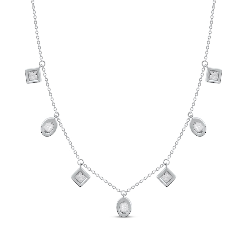 - Oval & Princess-Cut Diamond Dangle Necklace 1 ct tw White Gold Plated 16"