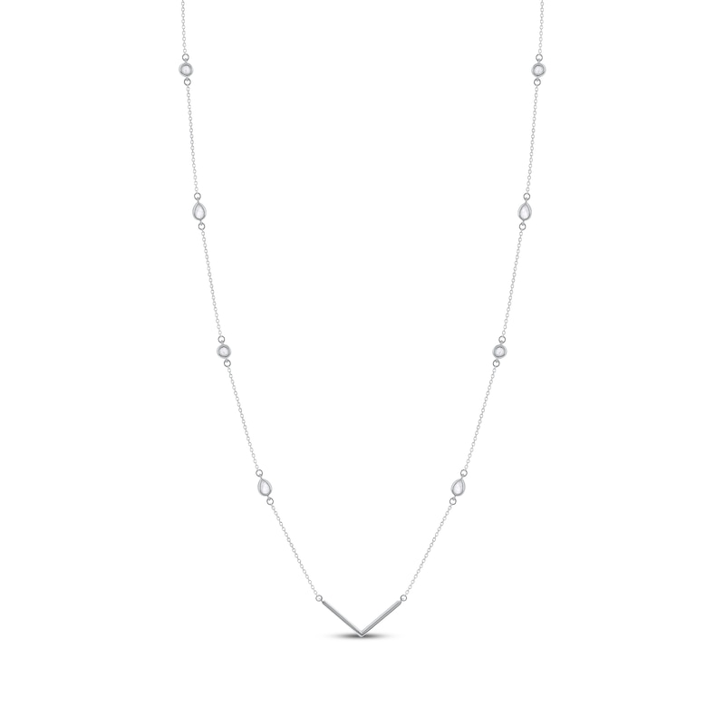 - Pear-Shaped & Round-Cut Diamond Station Chevron Necklace 1/2 ct tw White Gold Plated 18"