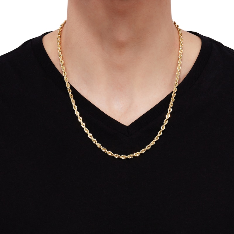 - Solid Glitter Rope Chain Necklace 4.4mm Yellow Gold Plated 22"