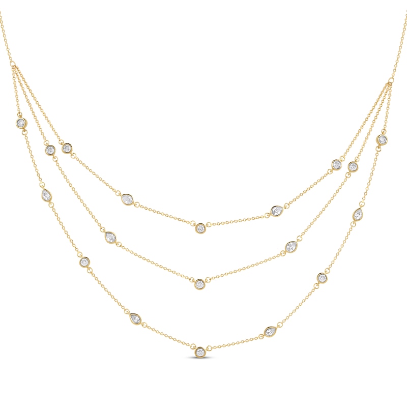 Pear-Shaped and Round-Cut Diamond Station Triple-Layer Necklace 1 ct tw Yellow Gold Plated 16"