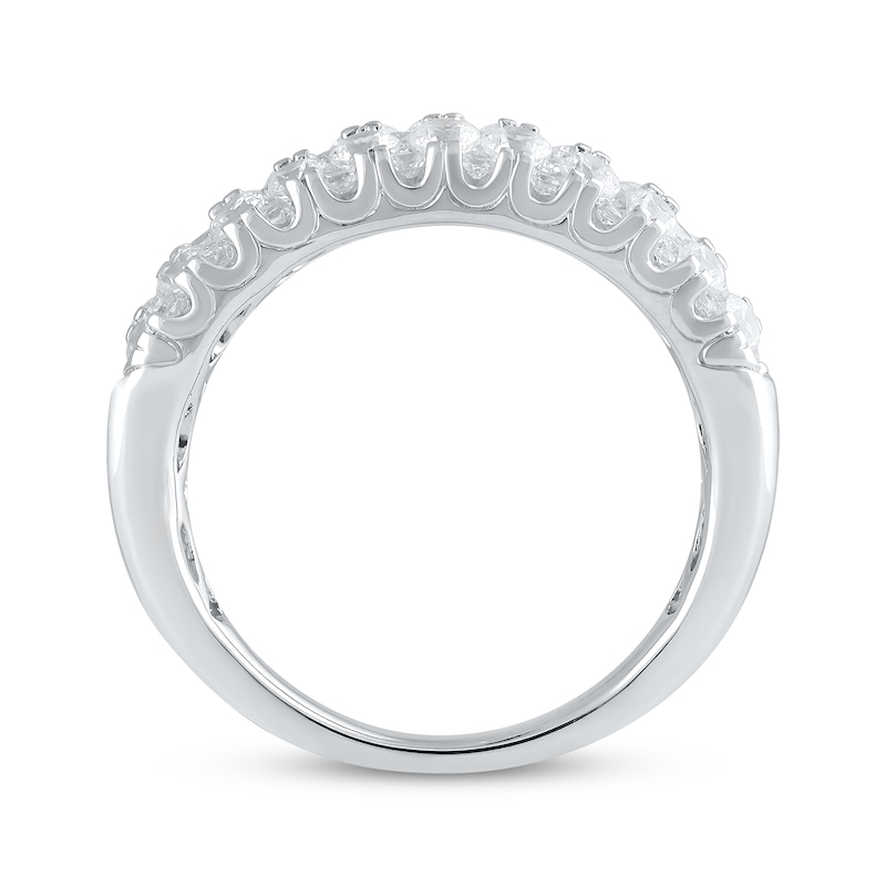 Give her an anniversary band that shines as bright as your love. This beautiful design showcases a breathtaking array of independently certified round lab-created diamonds styled in cool 14K white gold. The ring has a total lab-created diamond weight of 1 1/2 carats. From the Lab-Created Diamonds by KAY collection.