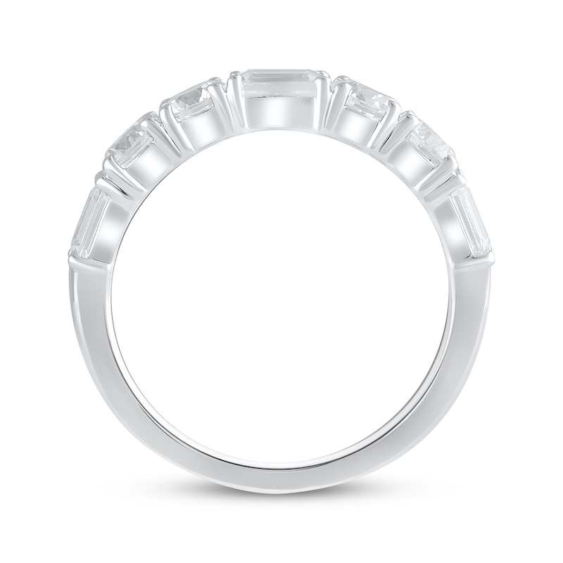 A sublime and sparkling look, this gorgeous anniversary band is the perfect way to celebrate your unending love. A 3/8-carat emerald-cut lab-created diamond centers the design, flanked by round and emerald-cut lab-created diamonds. The band is crafted in 14K white gold for an iconic and modern look. Weighing a total of 2 carats, the independently certified lab-created diamonds are inscribed with a unique Gemscribe® serial number to ensure your peace of mind. From the Lab-Created Diamonds by KAY collection.