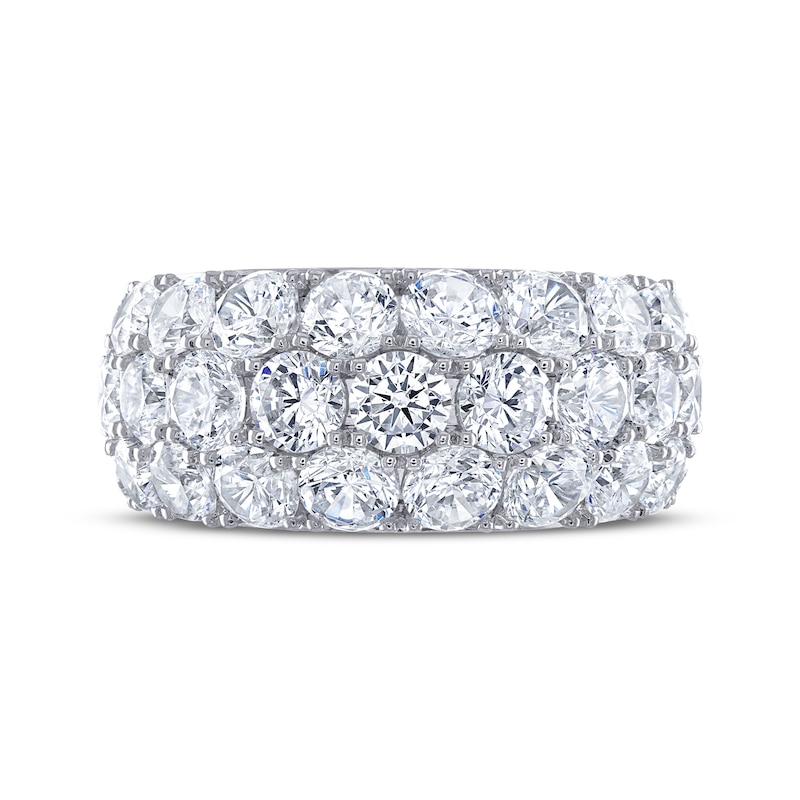 Wow her with the beauty of THE LEO® Legacy Lab-Created Diamond. Crafted in 14K white gold, this magnificent anniversary band showcases five independently certified round-cut lab-created diamonds. With endless shimmer, this wide band has a total lab-created diamond weight of 5 carats.