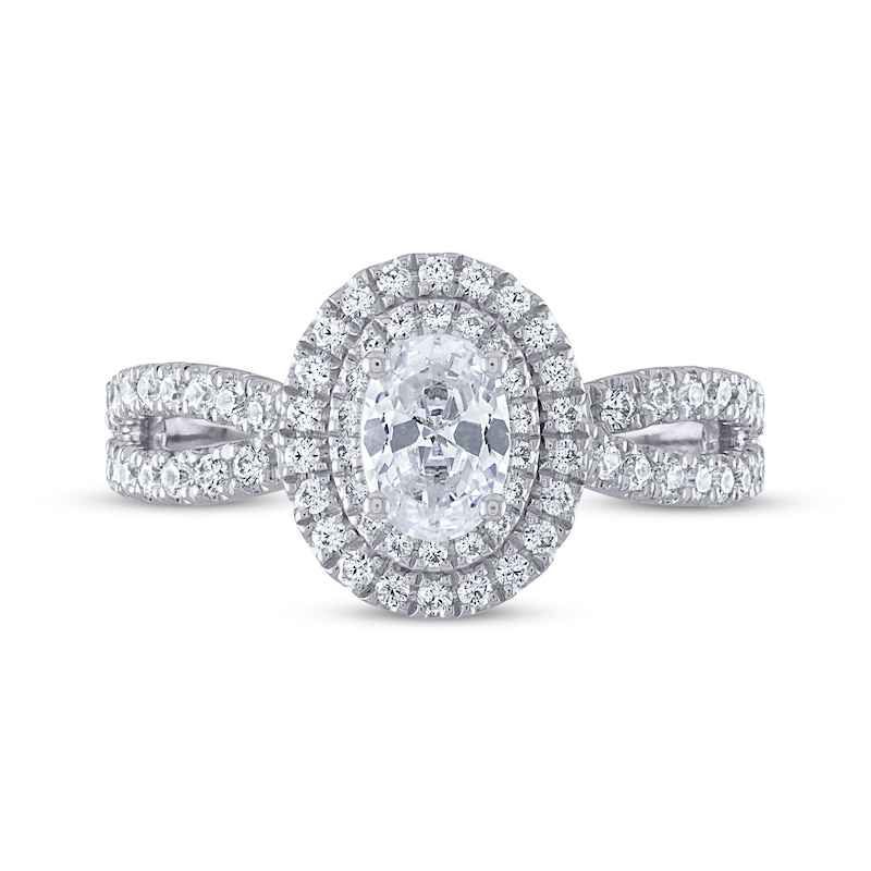 THE LEO Legacy Lab-Created Diamond Oval-Cut Double Halo Engagement Ring 1 ct tw White Gold Plated