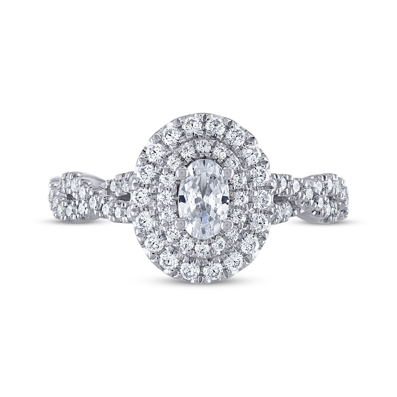 THE LEO Legacy Lab-Created Diamond Oval-Cut Double Halo Twist Engagement Ring 7/8 ct tw White Gold Plated