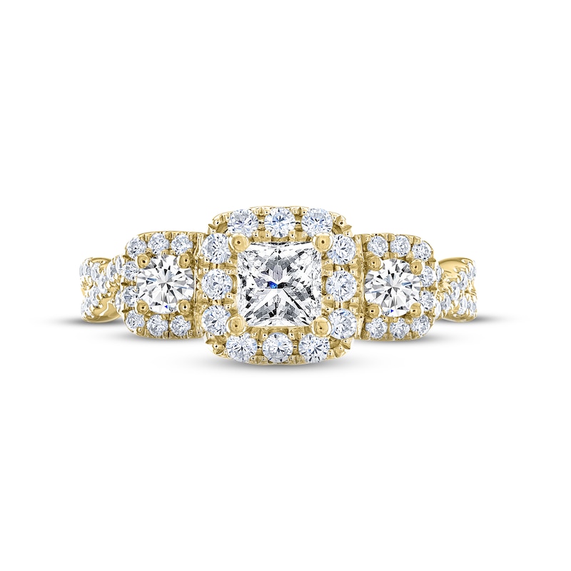 - THE LEO Legacy Lab-Created Diamond Princess & Round-Cut Three-Stone Engagement Ring 1 ct tw Yellow Gold Plated