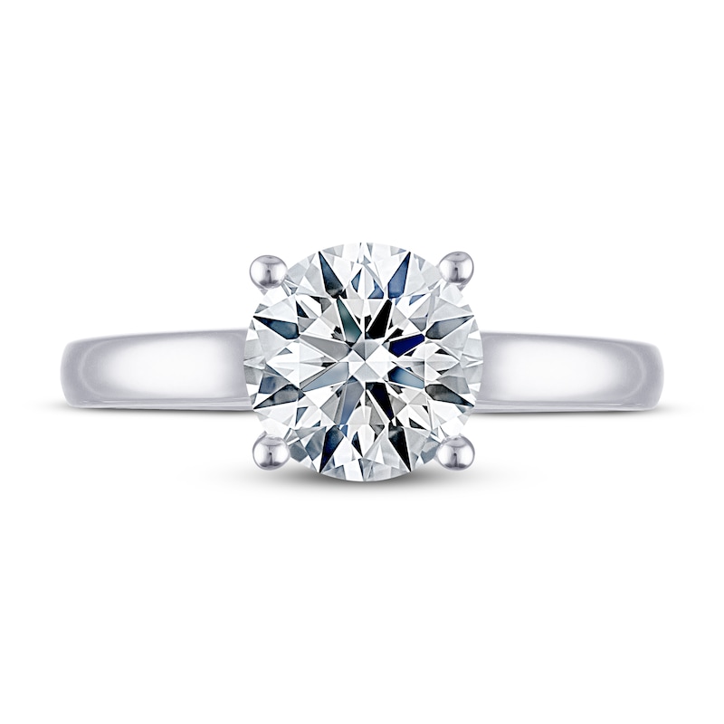 This exquisite solitaire engagement ring from THE LEO® Ideal Cut Diamond collection features a 2-carat Ideal Cut Diamond, a rare diamond of geometrically perfect proportions that releases the maximum amount of fire, sparkle and brilliance – to let your unique love for each other truly shine through. The classic ring is crafted in iconic 14K white gold. The independently certified center diamond is laser-inscribed with a unique Gemscribe® serial number to ensure your peace of mind.