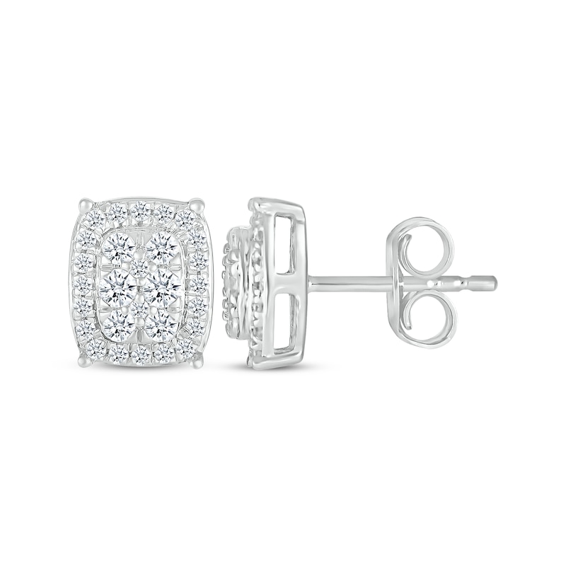 - Diamond Cushion-Shaped Stud Earrings 1/2 ct tw White Gold Plated