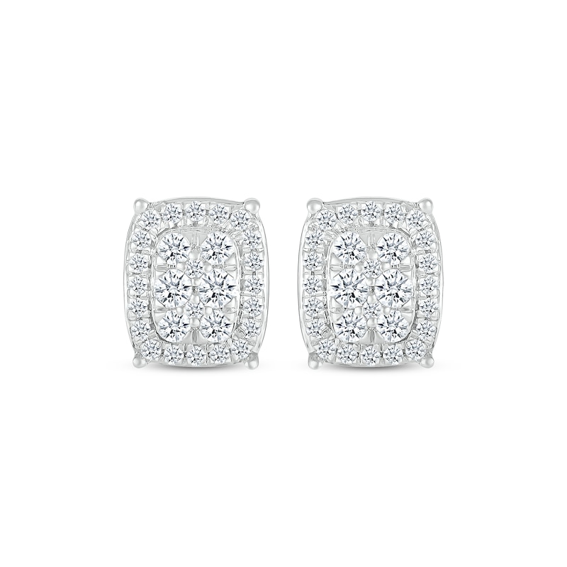 Diamond Cushion-Shaped Stud Earrings 1/2 ct tw White Gold Plated