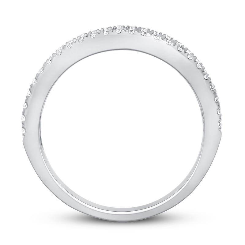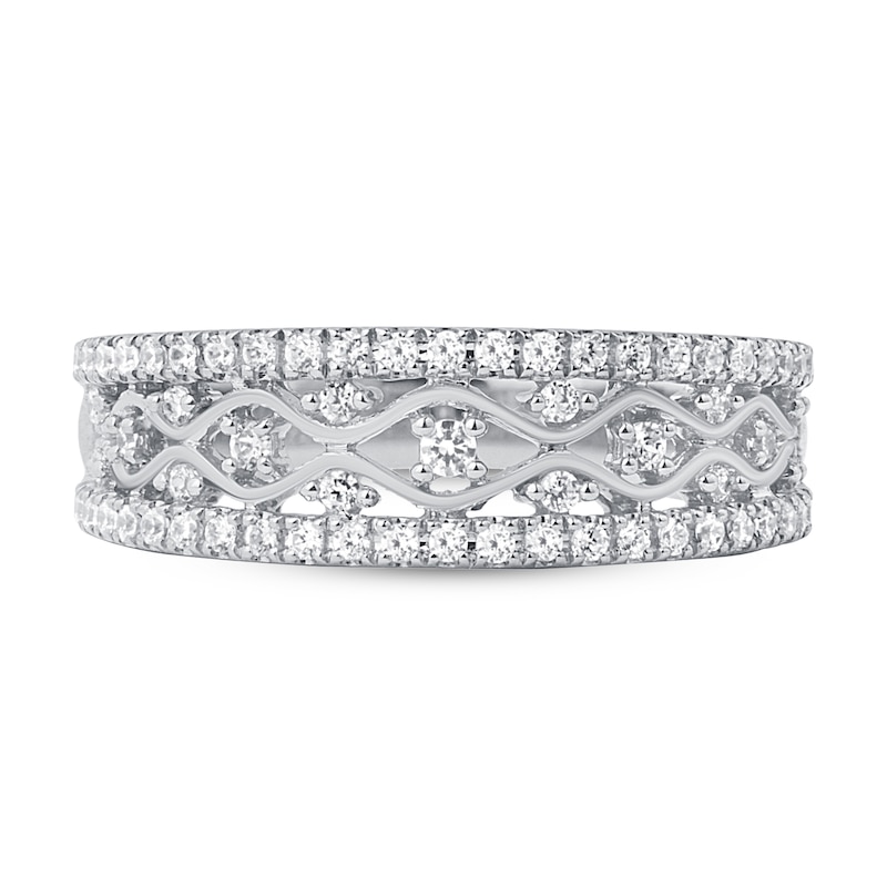 This vintage-inspired and shimmering anniversary ring for her features enchanting round-cut diamonds that delicately lace throughout the center of the 10K white gold band. The edges of the ring are fashioned with complementing sparkling diamonds, bringing the ring to a total diamond weight of 1/2 carat. From the Now & Forever® bridal collection.