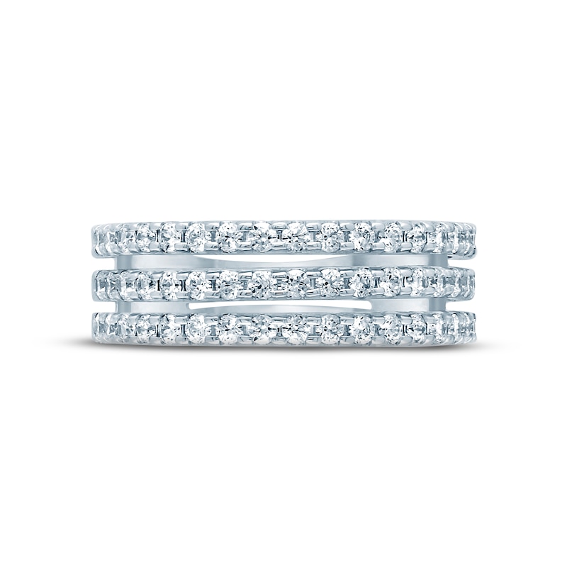 Radiant round diamonds sparkle in three rows on this beautiful anniversary ring for her, creating a stunning stacked look. The ring is crafted in 14K white gold and has a total diamond weight of 3/4 carat. From the Now and Forever® bridal collection.