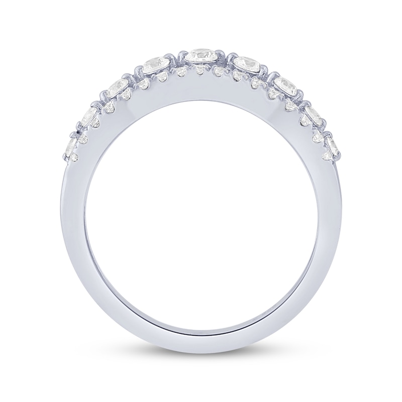 This gorgeous ring for her adds extra sparkle to her favorite ring finger stack or is worn beautifully alone. Set in iconic 14K white gold, the curved band showcases two rows of brilliant round diamonds totaling 1/2 carat in weight. From the Now & Forever® bridal collection.