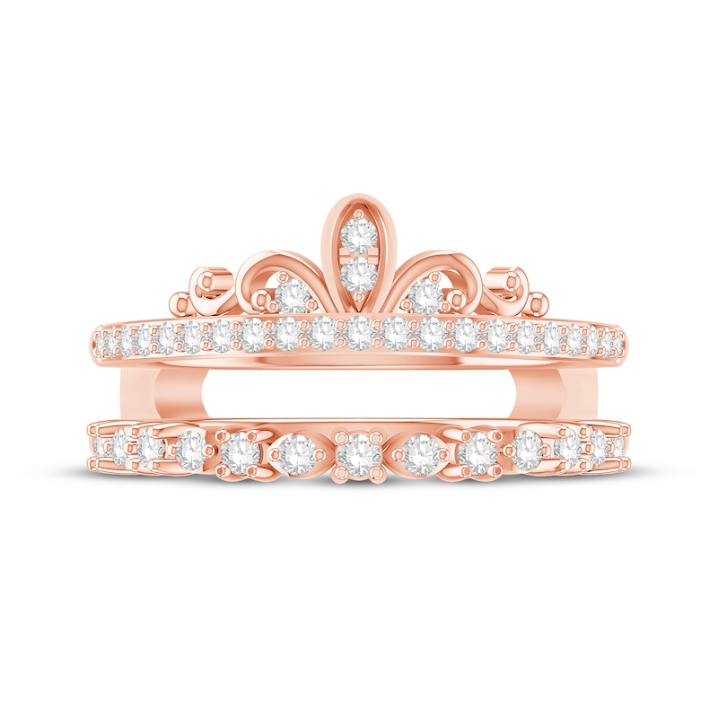 Fit for a queen, this diamond enhancer is a regal addition to her engagement ring (sold separately). Created in 14K rose gold, the bottom features round diamonds in squared and marquise-shaped frames. The top resembles a sparkling crown. This ring has a total diamond weight of 3/8 carat. From the Now & Forever® bridal collection.