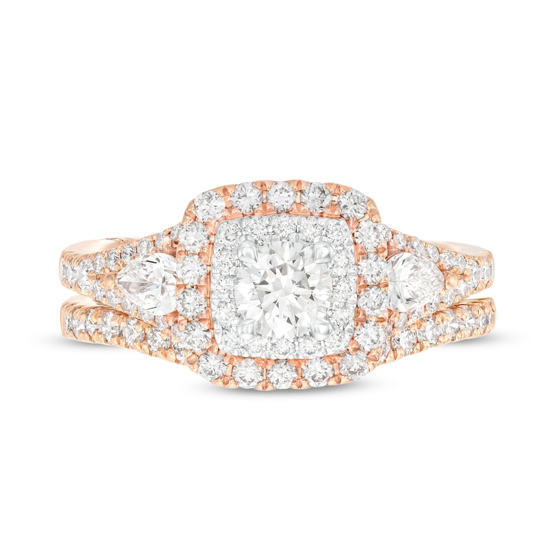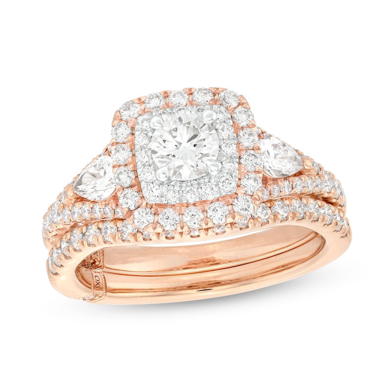 This romantic contoured wedding band features a row of radiant round-cut diamonds framed by milgrain detailing. Styled in gleaming 18K rose gold, the ring has a total diamond weight of 1/4 carat. From the Monique Lhuillier Bliss collection, available exclusively at KAY. Please note: This ring is available in limited sizes. If you don't see your size here, please visit a store to order your ring.