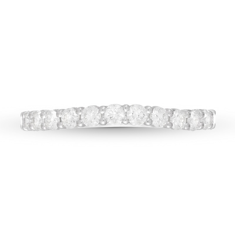 This classic diamond wedding band from Neil Lane Bridal® features a row of brilliant round-cut diamonds set in 14K white gold. Milgrain detailing completes the chic look, and the ring has a total diamond weight of 3/4 carat. The ring is crafted to pair with her matching engagement ring (sold separately).