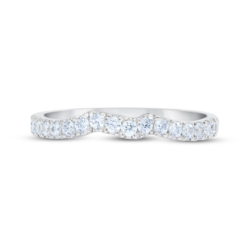 On your wedding day, slip this gorgeous band beside her spectacular THE LEO First Light® Diamond engagement ring. Round-cut diamonds adorn the 14K white gold silhouette, which is contoured to pair with her engagement ring (sold separately). The ring has a total diamond weight of 1/3 carat.