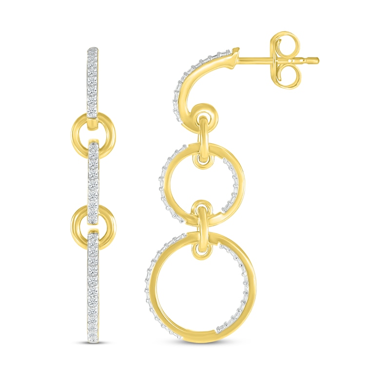 - Diamond Circle Link Dangle Earrings 1/2 ct tw Yellow Gold Plated