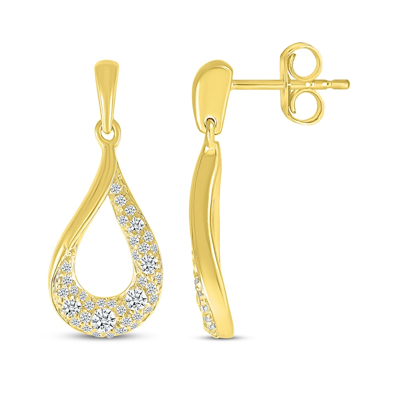 - Diamond Cobblestone Twist Teardrop Dangle Earrings 1/2 ct tw Yellow Gold Plated