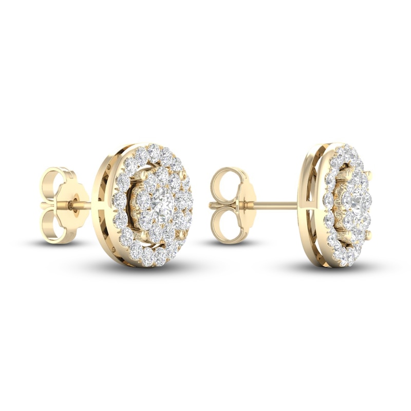 - Diamond Halo Stud Earrings 1 ct tw Round-Cut Yellow Gold Plated