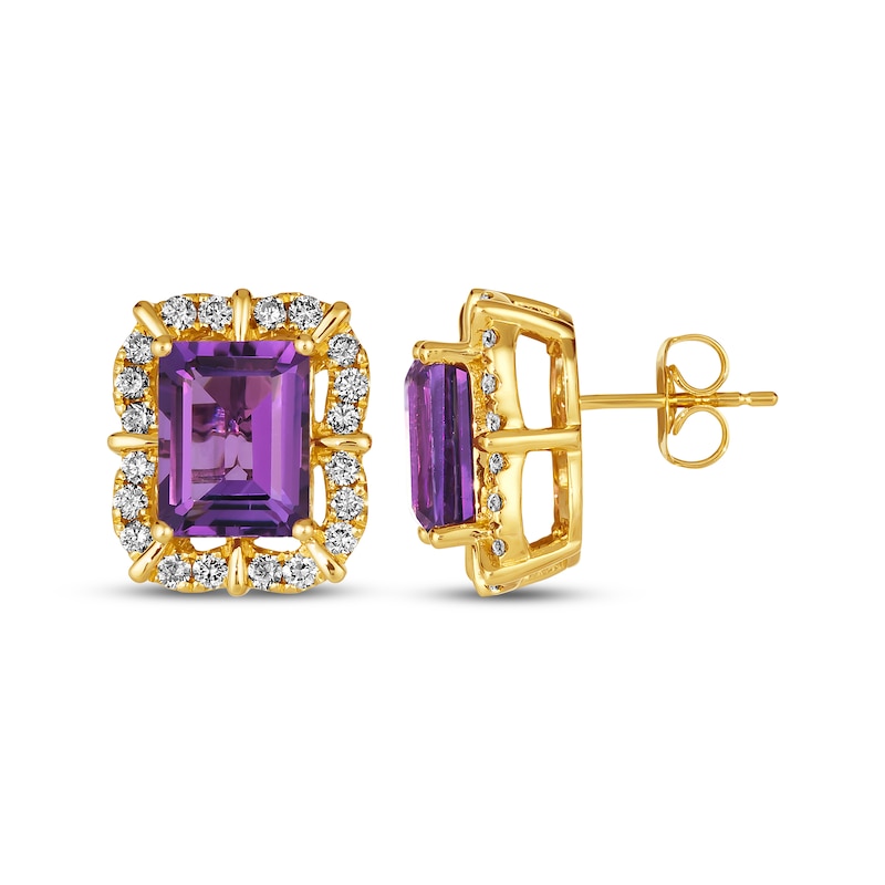 - Le Vian Emerald-Cut Amethyst Earrings 5/8 ct tw Diamonds Honey Gold Plated