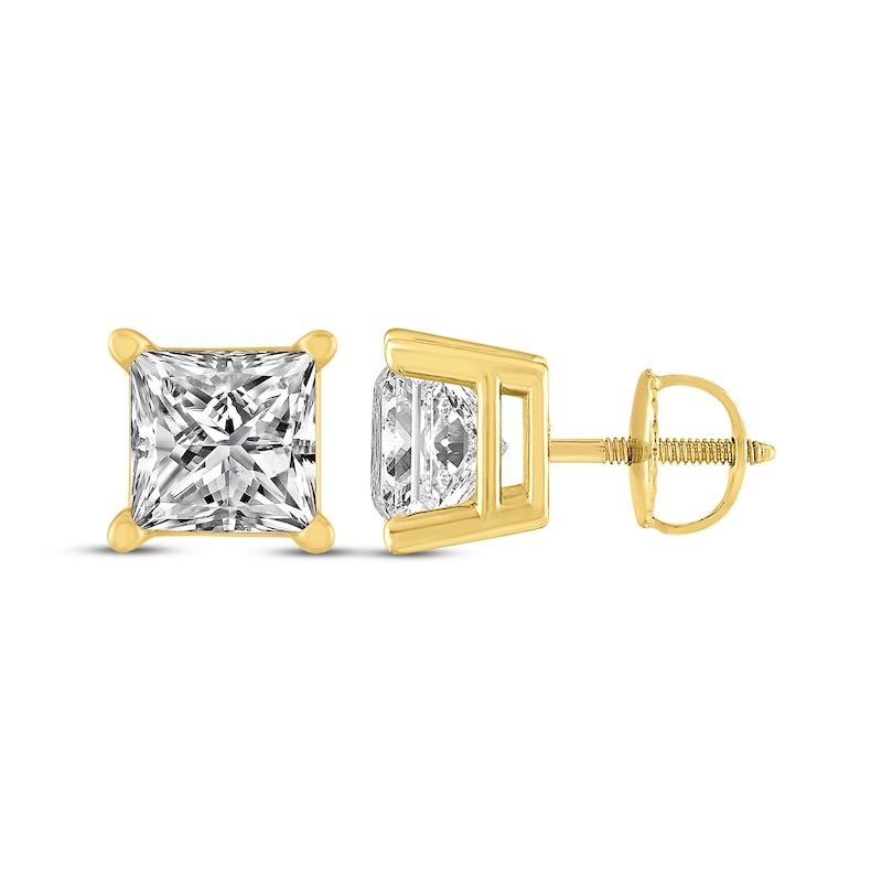 - Princess-Cut Diamond Solitaire Stud Earrings 1-1/4 ct tw Yellow Gold Plated