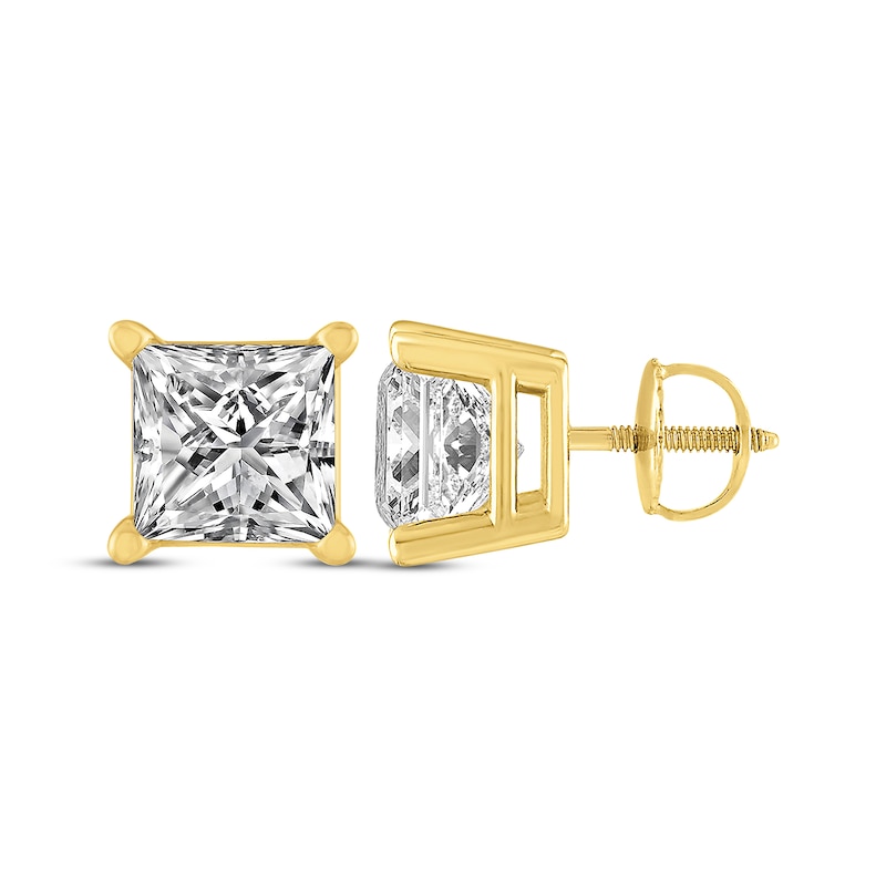 - Princess-Cut Diamond Solitaire Stud Earrings 2 ct tw Yellow Gold Plated