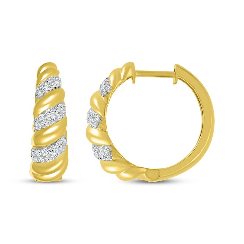 - Round-Cut Diamond Spiral Hoop Earrings 3/8 ct tw Yellow Gold Plated