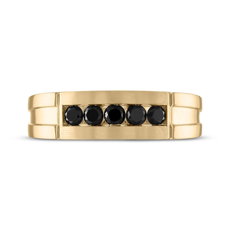 - Men's Black Diamond Satin-Finish Wedding Band 1/2 ct tw Yellow Gold Plated