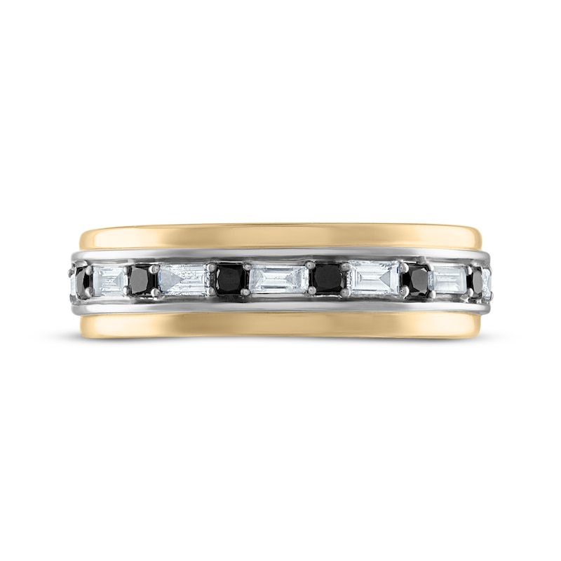 - Men's Square-Cut Black & Baguette-Cut White Diamond Wedding Band 1/2 ct tw Two-Tone Gold Plated