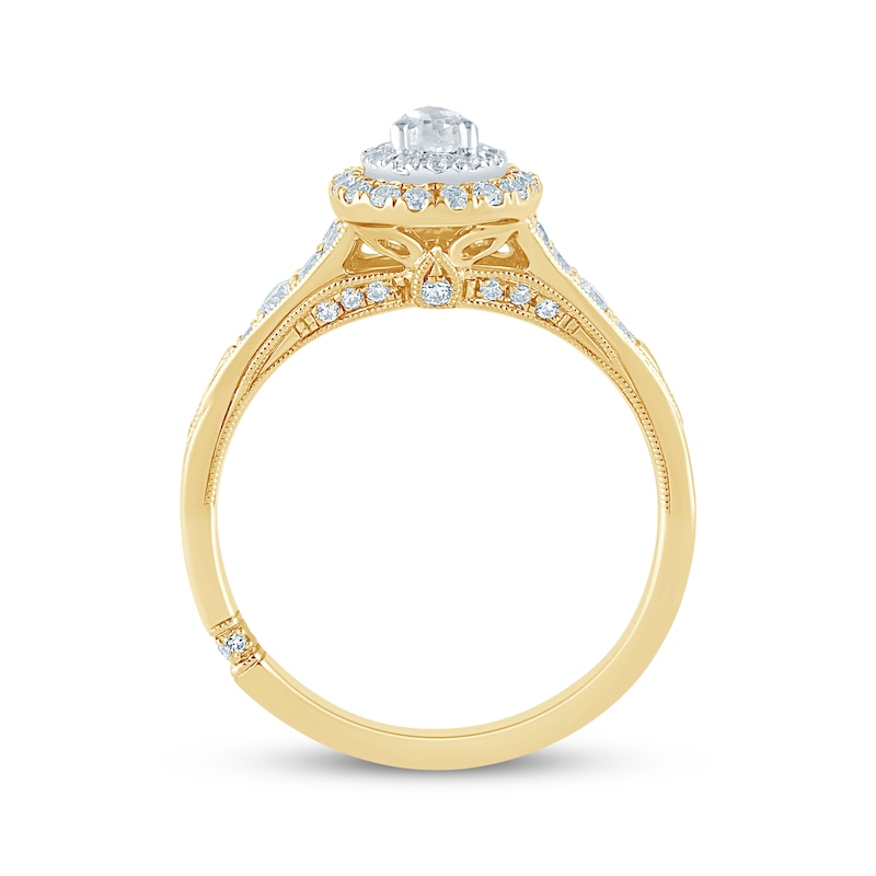 - Monique Lhuillier Bliss Pear-Shaped Diamond Tapered Engagement Ring 3/4 ct tw Two-Tone Gold Plated