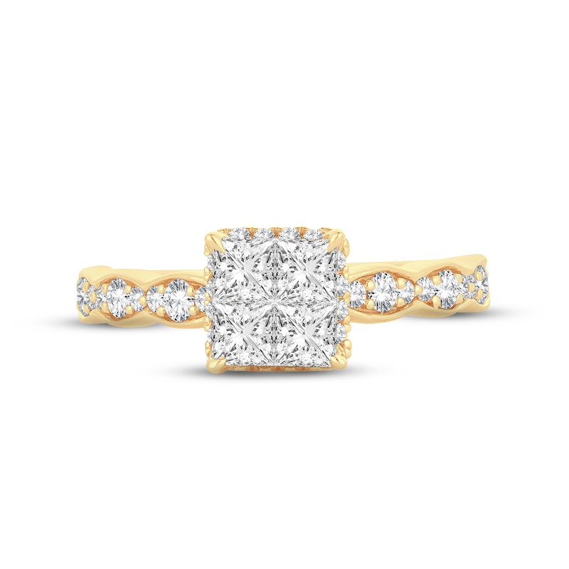 - Multi-Diamond Engagement Ring 1 ct tw Princess & Round-cut Yellow Gold Plated