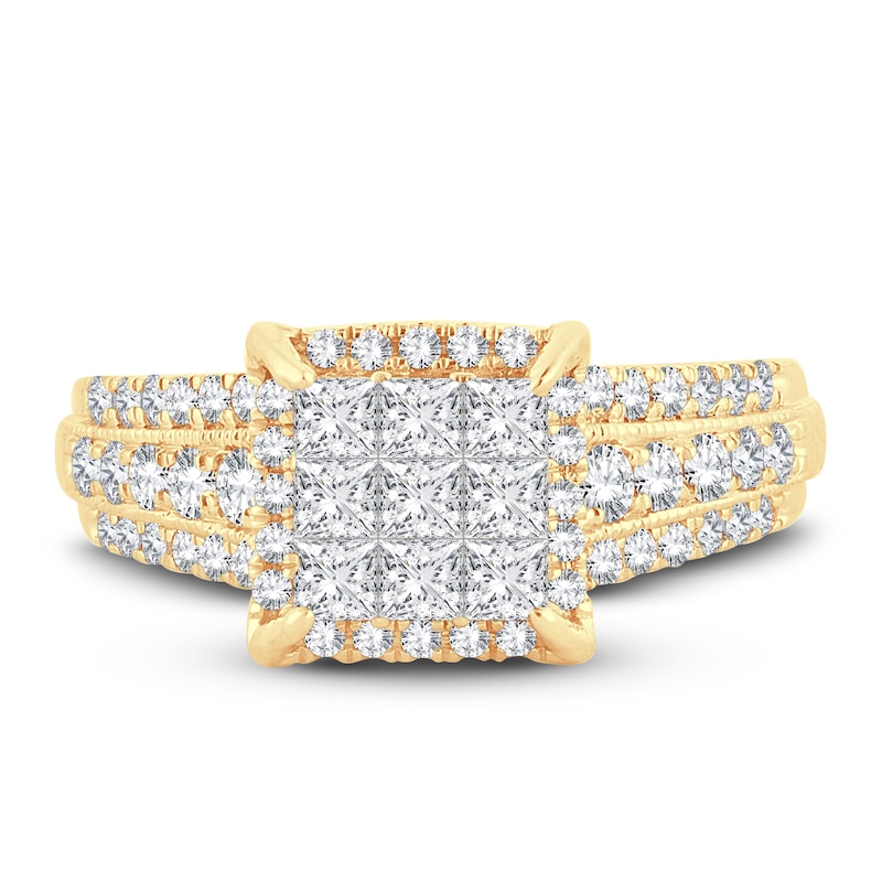 - Multi-Diamond Engagement Ring 1 ct tw Princess & Round Yellow Gold Plated