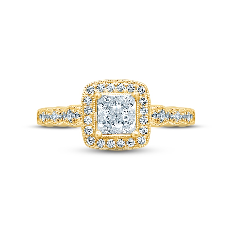- Multi-Diamond Engagement Ring 5/8 ct tw Princess & Round-cut Yellow Gold Plated
