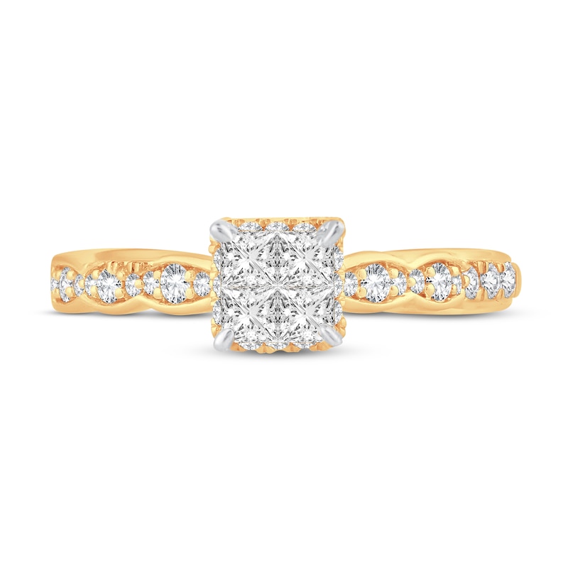 - Multi-Diamond Engagement Ring 5/8 ct tw Princess & Round Yellow Gold Plated