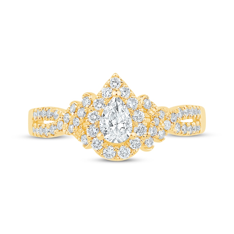 - Pear-Shaped Diamond Halo Engagement Ring 3/4 ct tw Yellow Gold Plated