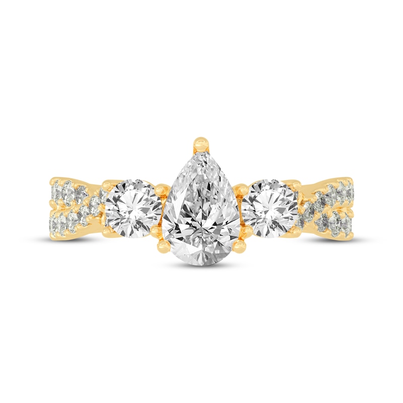 - Pear-Shaped & Round-Cut Three-Stone Diamond Engagement Ring 2 ct tw Yellow Gold Plated