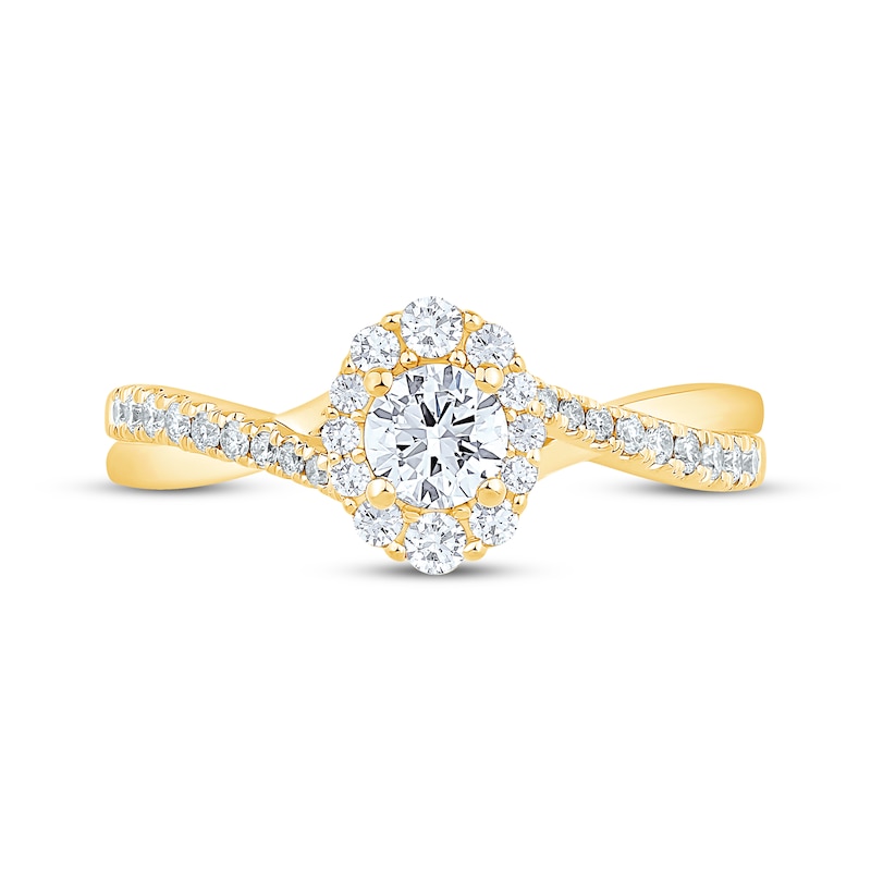 - Round-Cut Diamond Oval-Halo Twist Engagement Ring 5/8 ct tw Yellow Gold Plated