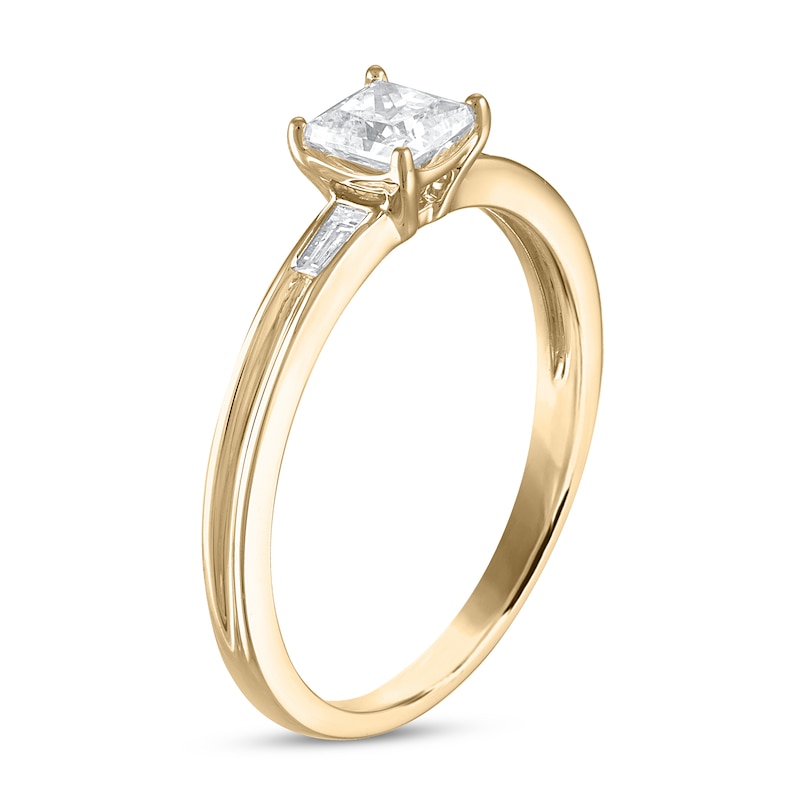 Diamond Engagement Ring 1/2 ct tw Princess & Baguette Yellow Gold Plated