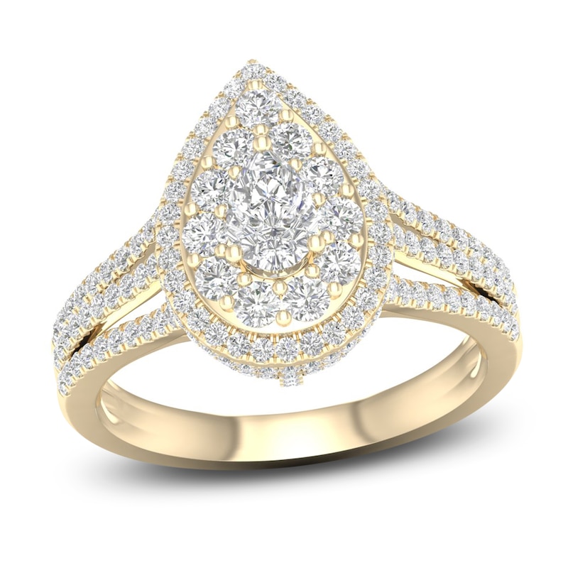 Multi-Diamond Engagement Ring 1-1/5 ct tw Pear & Round-cut Yellow Gold Plated