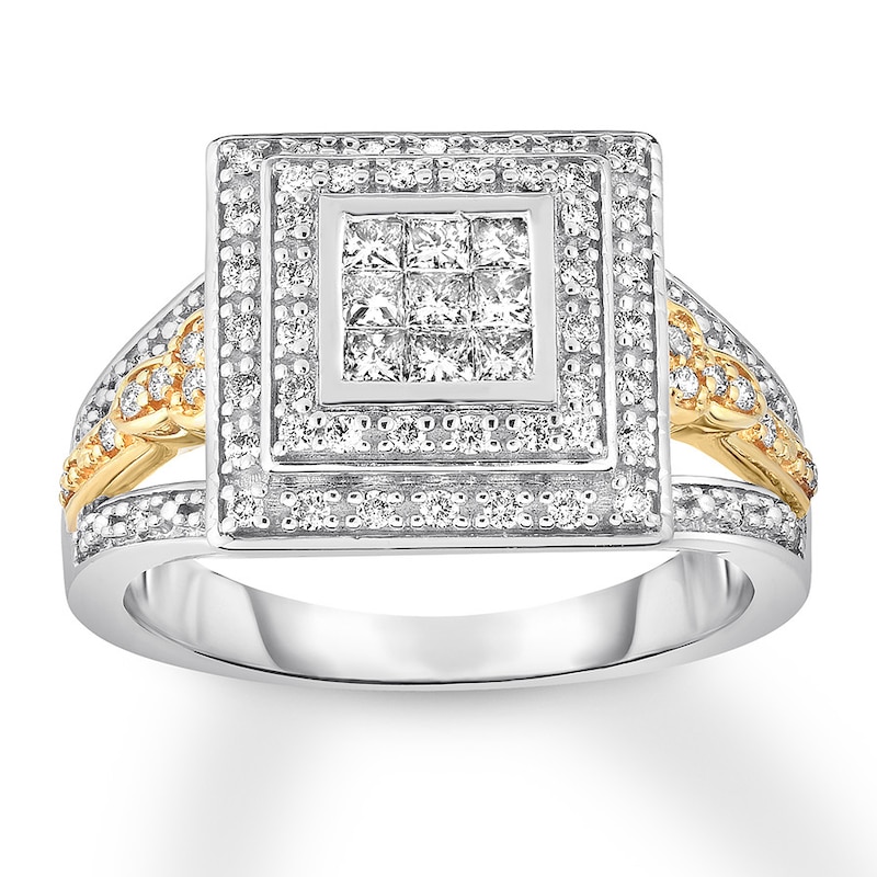 Diamond Engagement Ring 1 ct tw Princess & Round Yellow Gold Plated