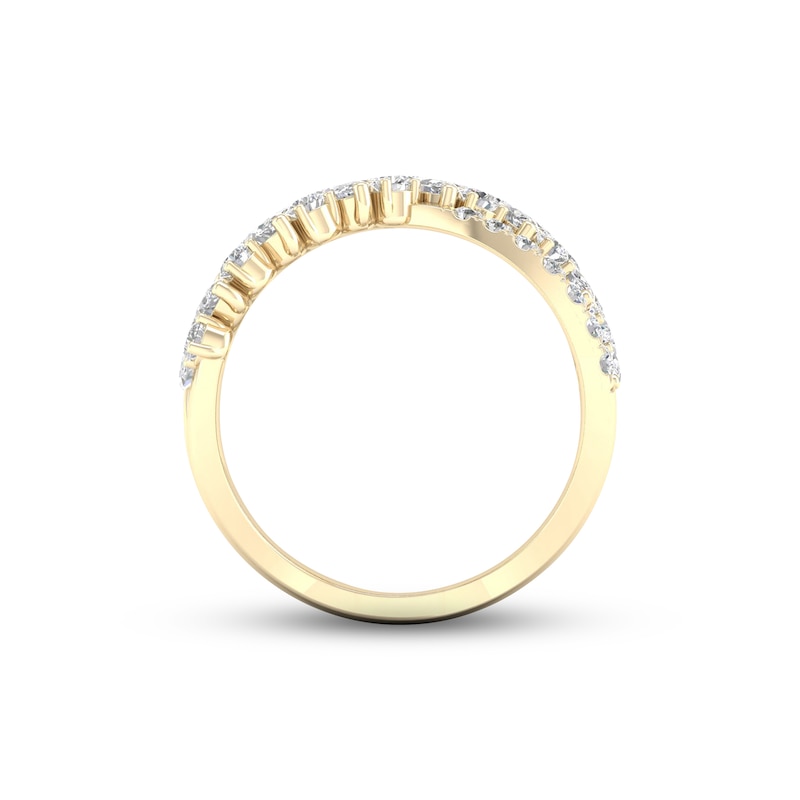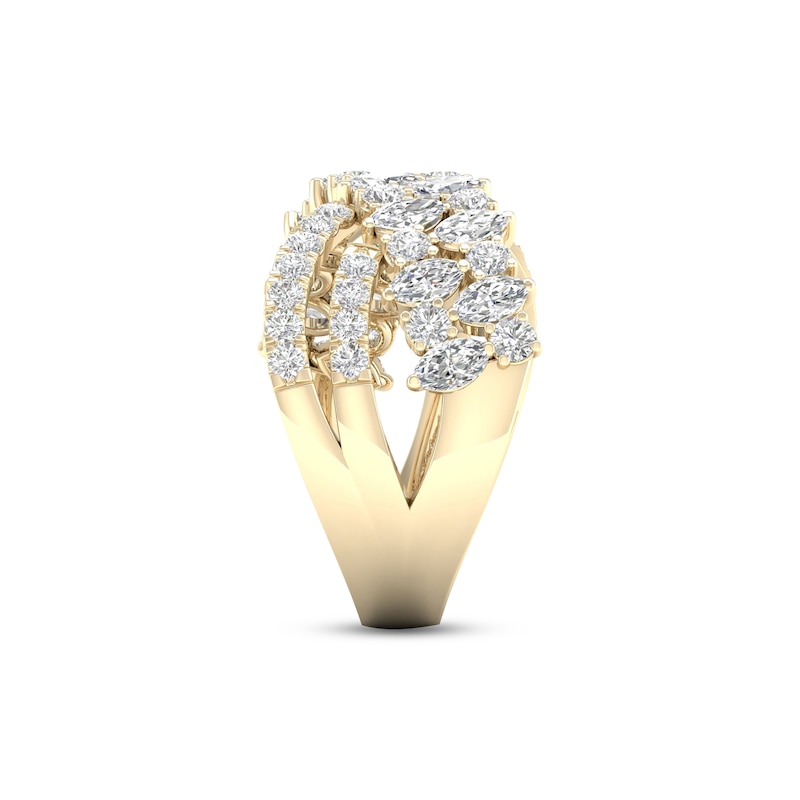This chic ring for her shines in 14K yellow gold with a gorgeous crossover design. Brilliant round and marquise-cut diamonds shimmer throughout for a total diamond weight of 1 1/2 carats.