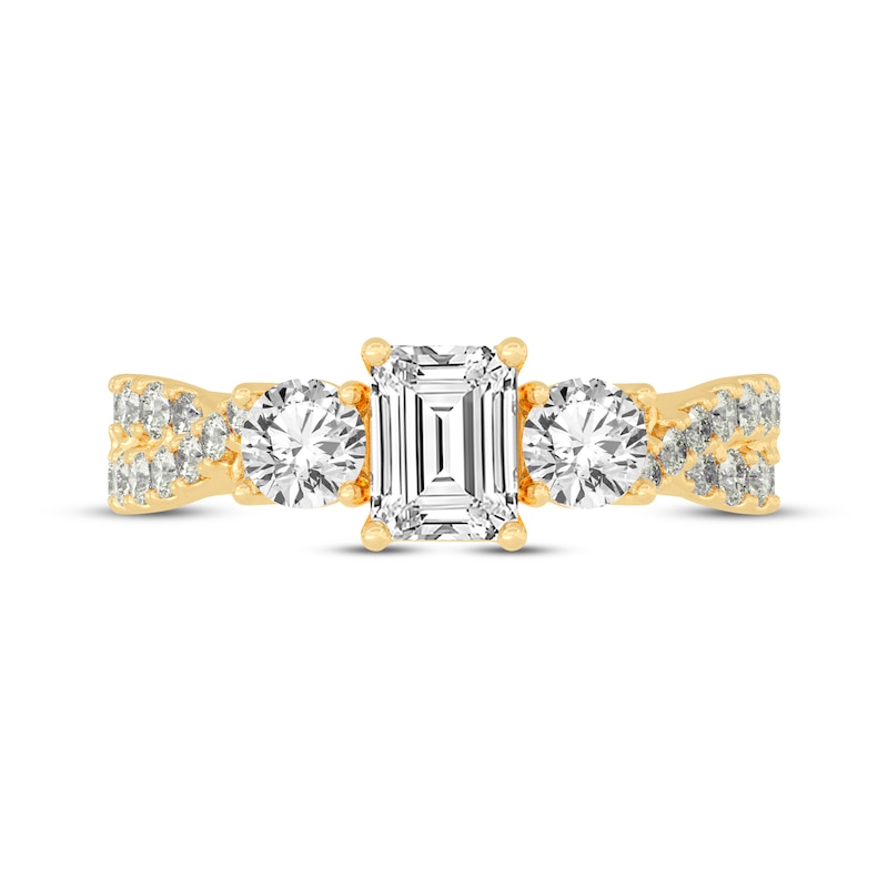 - Emerald & Round-Cut Three-Stone Diamond Engagement Ring 2 ct tw Yellow Gold Plated