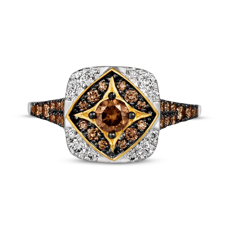 A rich look, this ring from Le Vian® takes the cake. Created in 14K Vanilla Gold®, the cushion-shaped design features a shimmering 14K Honey Gold™ centerpiece of round-cut Chocolate Diamonds® wrapped in a frame of round-cut Nude Diamonds™. More Chocolate Diamonds® line the shank for a total diamond weight of 7/8 carat. Le Vian®. Discover the Legend. This ring is available in limited sizes. If you don't see your size here, please visit a store to order your ring.