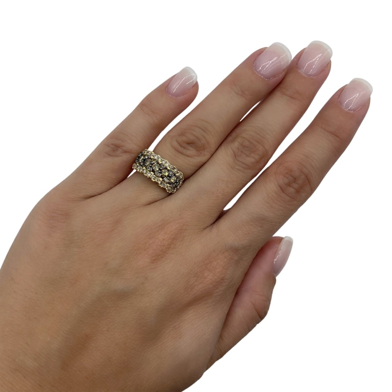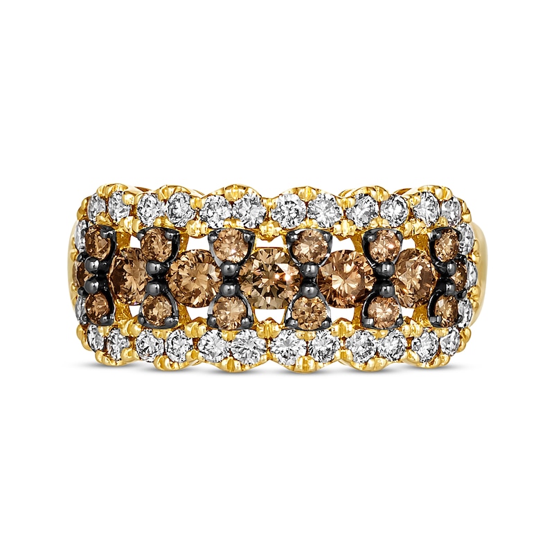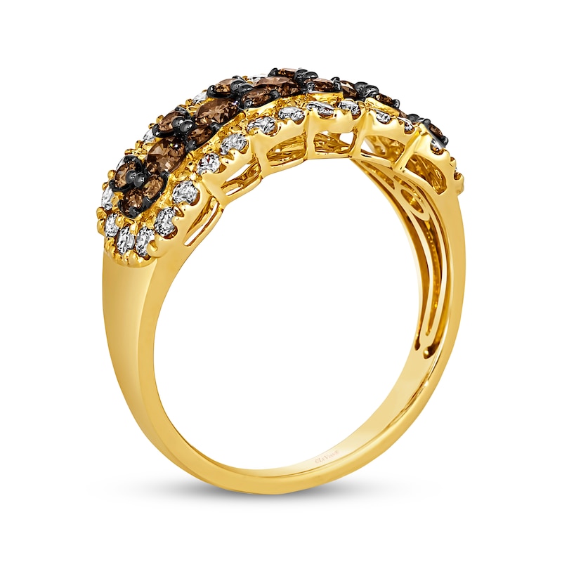 Decadent and delightful, this Le Vian® ring from the KAY exclusive Chocolate Waterfall™ collection is a smooth choice. Rows of rich round Chocolate Diamonds® in black rhodium plate sweep across the style, wrapped in a dazzling frame of round Nude Diamonds™. The ring is styled in 14K Honey Gold™ and has a total diamond weight of 1 1/5 carats. Le Vian®. Discover the Legend. This ring is available in limited sizes. If you don't see your size here, please visit a store to order your ring.